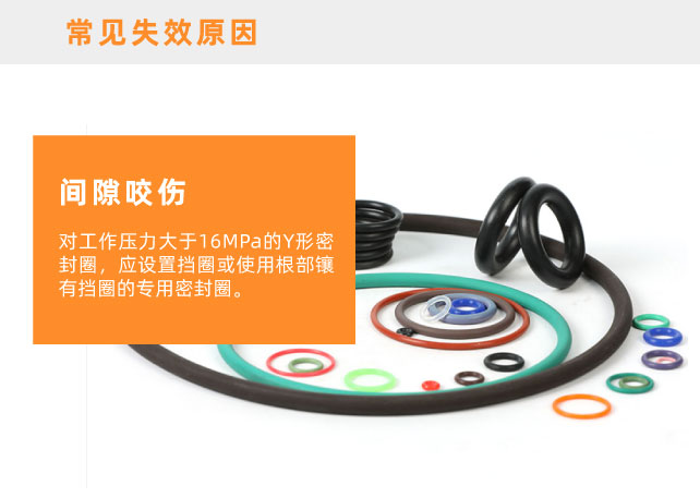 Y形密封圈的間隙咬傷現(xiàn)象與原因與O形圈的類似,發(fā)生在根部。同樣,解決措施是:根據(jù)工作壓力限制密封間隙、正確選用Y形圈材料。對工作壓力大于16MPa的Y形密封圈,應設置擋圈或使用根部鑲有擋圈的專用密封圈。擋圈通常使用剛性較高的塑料材料,如聚四氟乙烯、聚酰胺等。
