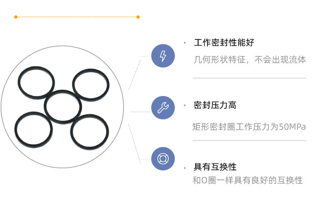 在使用矩形密封圈時,發(fā)生壓力沖擊時,由于它具有自身的幾何形狀特征,不會出現(xiàn)流體,更不會因為出現(xiàn)移動而排出。在承受壓力性能方面,矩形密封圈的額定壓力為50MPa。
